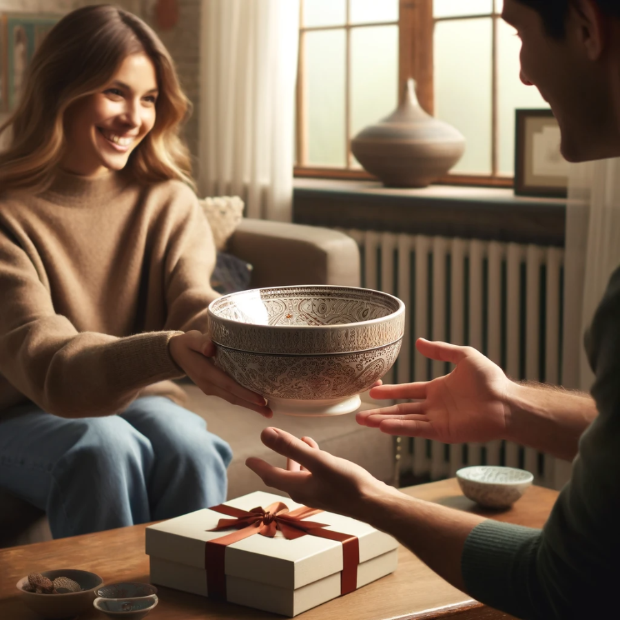 깨끗하고 큰 그릇을 선물받는 꿈은 큰 행운과 풍요를 의미합니다. 이는 사업적 성공이나 큰 프로젝트의 성과를 나타낼 수 있습니다.