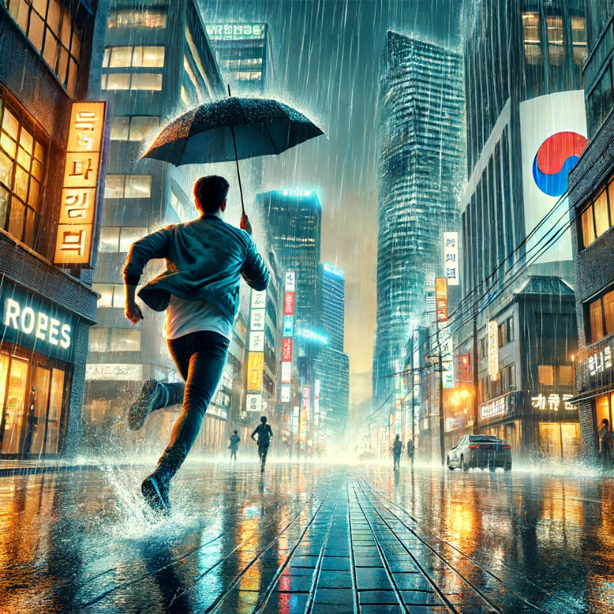 빗속을 뛰어가며 목적지에 도착하는 꿈