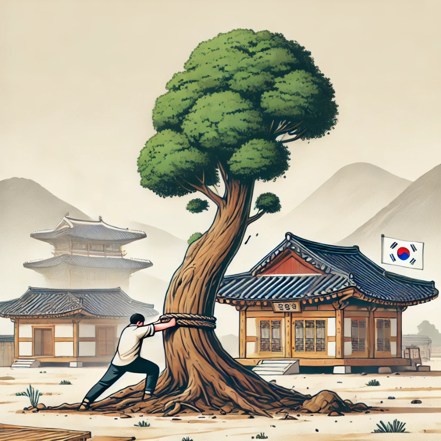 한국에서 나무는 생명력과 성장, 번영을 상징합니다. 나무를 뽑는 행위는 이와 반대로 성장의 중단이나 일상에서의 큰 변화를 상징할 수 있습니다. 이는 꿈꾸는 사람이 현재 상황에서 벗어나 새로운 길을 찾고자 하는 마음을 나타내며, 새로운 시작을 준비하는 과정에서 겪는 어려움을 의미할 수 있습니다.