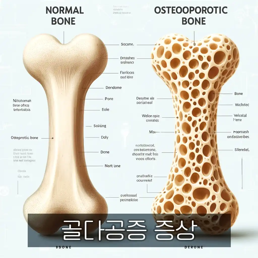 • 골밀도 감소: 뼈의 무기질 함량이 줄어들어 전체적인 뼈의 밀도가 낮아집니다.