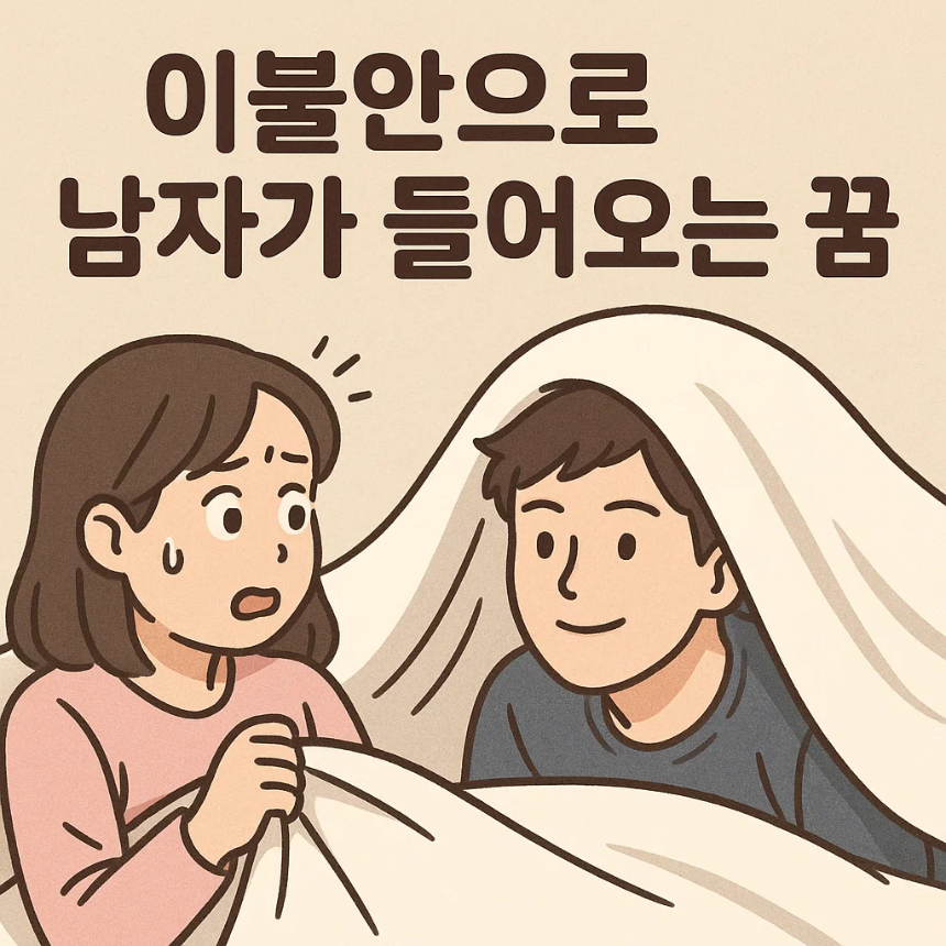 이불은 개인의 안전하고 편안한 공간, 사적인 영역을 상징합니다. 이러한 사적인 공간에 다른 사람, 특히 남자가 들어온다는 것은 당신의 내면세계나 개인적 영역에 어떤 영향력이 작용하고 있음을 의미합니다.