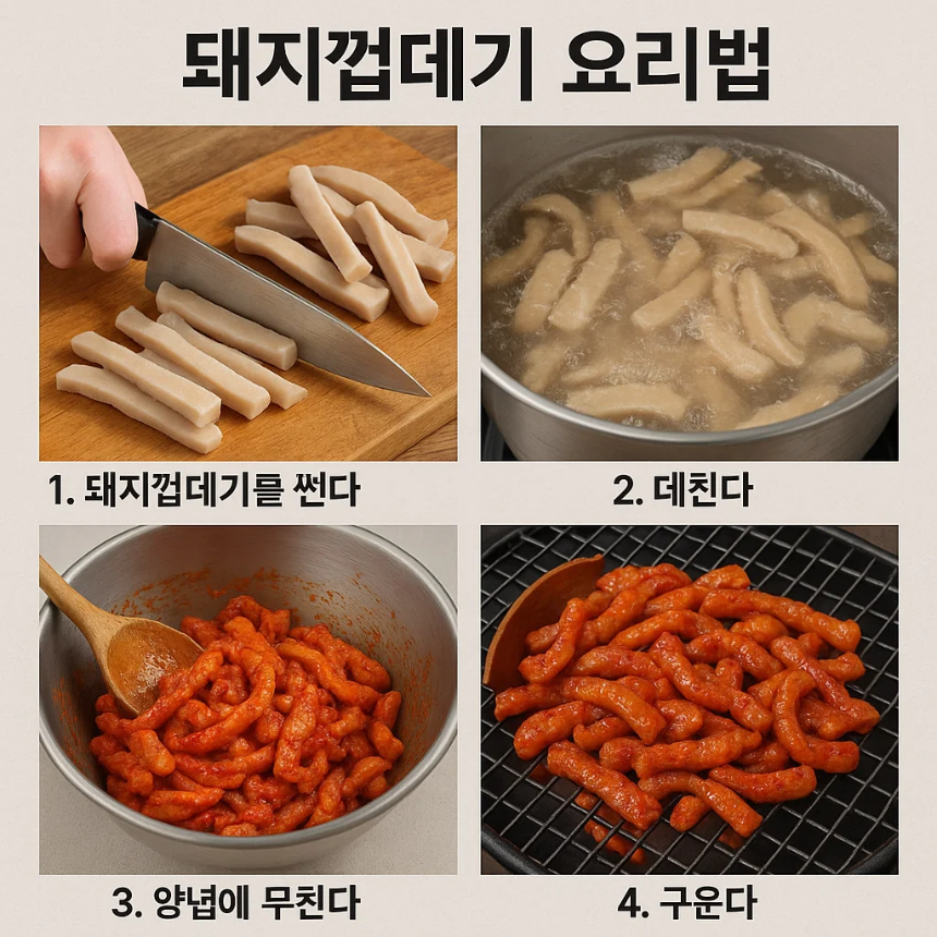 돼지껍데기 요리법은 손질과 양념이 핵심입니다.
