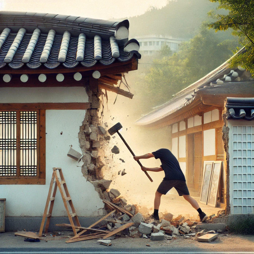 이 꿈은 당신의 내면에서 일어나고 있는 변화의 욕구를 반영합니다. 벽을 허무는 행동은 기존의 한계나 제약으로부터 자유로워지고 싶은 마음, 새로운 시작을 향한 열망을 나타냅니다.